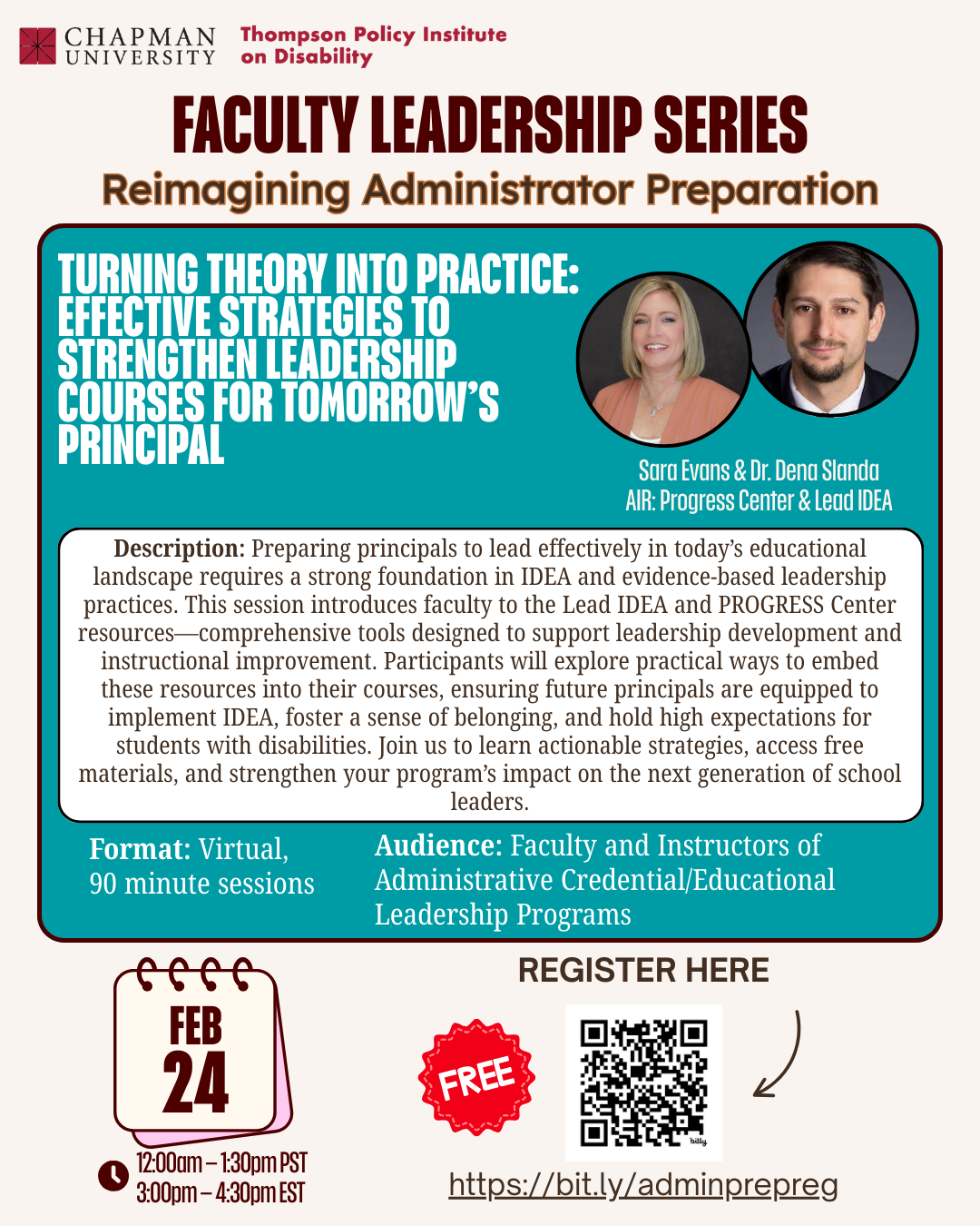 Presented by Sara Evans and Dr. Dena Slanda of AIR’s PROGRESS Center and Lead IDEA, this ninety-minute session introduces faculty to free, research-based resources created to support leadership development and instructional improvement. Participants will explore how Lead IDEA and PROGRESS Center tools can be embedded into Administrative Credential and Educational Leadership programs to better prepare future principals to implement IDEA, support inclusive school environments, and maintain high expectations for students with disabilities across diverse learning contexts.