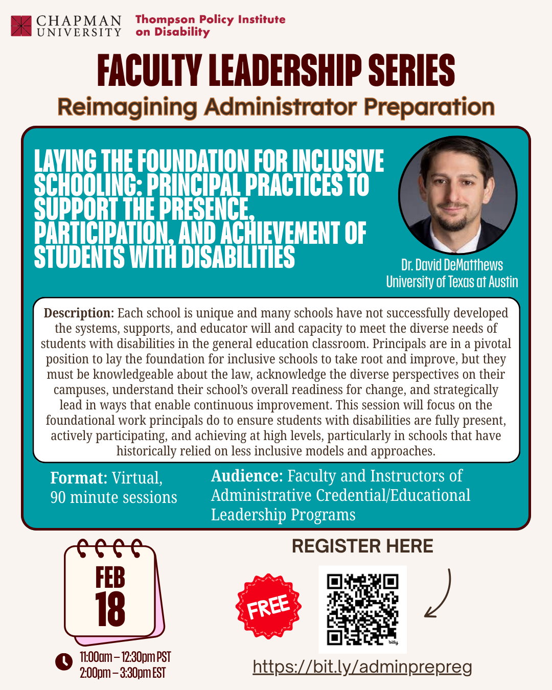 Faculty Leadership Series: Reimagining Administrator Preparation – Inclusive School Leadership
